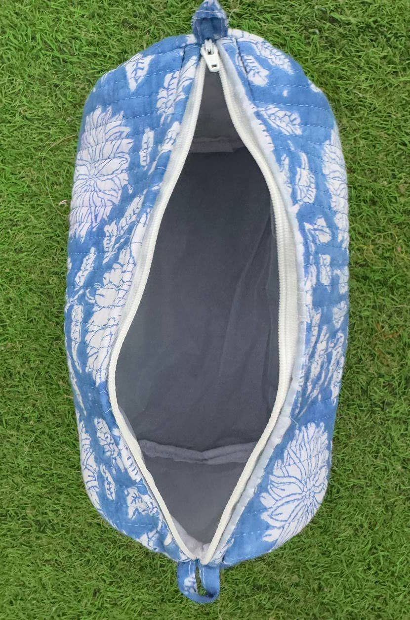 These toiletry bags are a perfect trio for your travel routine and organization. Featuring a hand-printed block print set against quilted stitching, these adorable bags are eye-catching and perfect for any on-the-go lifestyle. Grab one or purchase the whole trio of different sizes and travel in style. These bags are made by a woman-owned store that I order them from. Details: - Features a durable zipper closure to keep your items secure - Fully lined with a waterproof lining to protect against any spills or leaks Measurements: - Large : 10" (Length) x 4.7" (Width) x 5.5" (Height) - Medium: 8.3" (Length) x 3.9" (Width) x 4.3" (Height) - Small : 7.5" (Length) x 3.5" (Width) x 3.9" (Height) If you have any questions, please feel free to ask! I hope you shop with us :) Thank you!