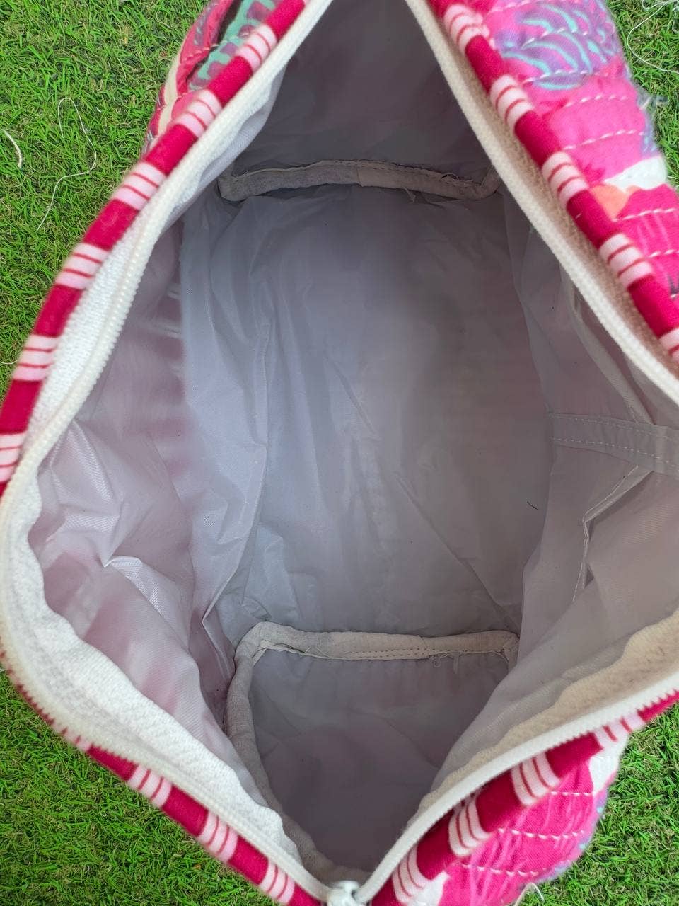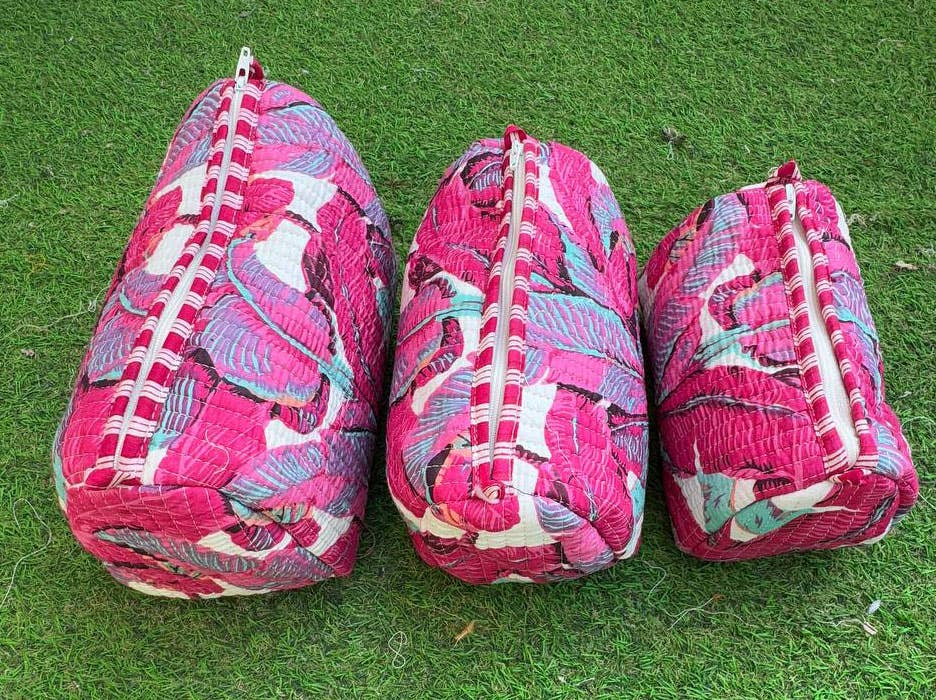 These toiletry bags are a perfect trio for your travel routine and organization. Featuring a hand-printed block print set against quilted stitching, these adorable bags are eye-catching and perfect for any on-the-go lifestyle. Grab one or purchase the whole trio of different sizes and travel in style. These bags are made by a woman-owned store that I order them from. Details: - Features a durable zipper closure to keep your items secure - Fully lined with a waterproof lining to protect against any spills or leaks Measurements: - Large : 10" (Length) x 4.7" (Width) x 5.5" (Height) - Medium: 8.3" (Length) x 3.9" (Width) x 4.3" (Height) - Small : 7.5" (Length) x 3.5" (Width) x 3.9" (Height) If you have any questions, please feel free to ask! I hope you shop with us :) Thank you!
