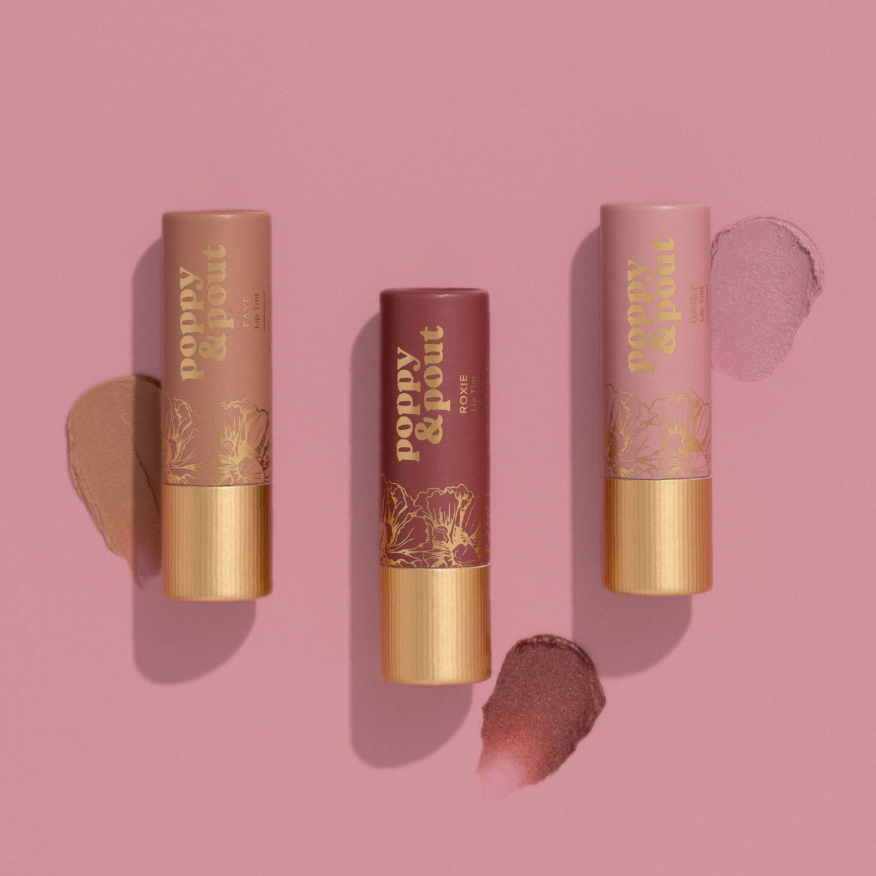 🌼 DAISY "THE FLOWER CHILD" Our Daisy Lip Tint is the prettiest blend of lavender and pink and one of our best sellers! 🌼 TINTED LIP BALM Your favorite Poppy & Pout lip balm formula, now kissed with color! Our lip tints provide a slight shimmery color and loads of hydration to your pout. All lip tints come in one flavor; our signature Sweet Mint scent! Don't forget to grab a tester so your customers can try swatching tints before buying. 🌼 CLEAN, BUILDABLE FORMULA Swipe once for a subtle look, or double up to achieve a more colorful lip! This clean and buildable formula also layers well with other lip products that can often be drying. 🌼 100% NATURAL INGREDIENTS We only use ingredients that are 100% natural. No parabens, phthalates, or petrolatum. 🌼 ABOUT POPPY & POUT We have been making our all-natural lip care products by hand in Idaho since 2014.