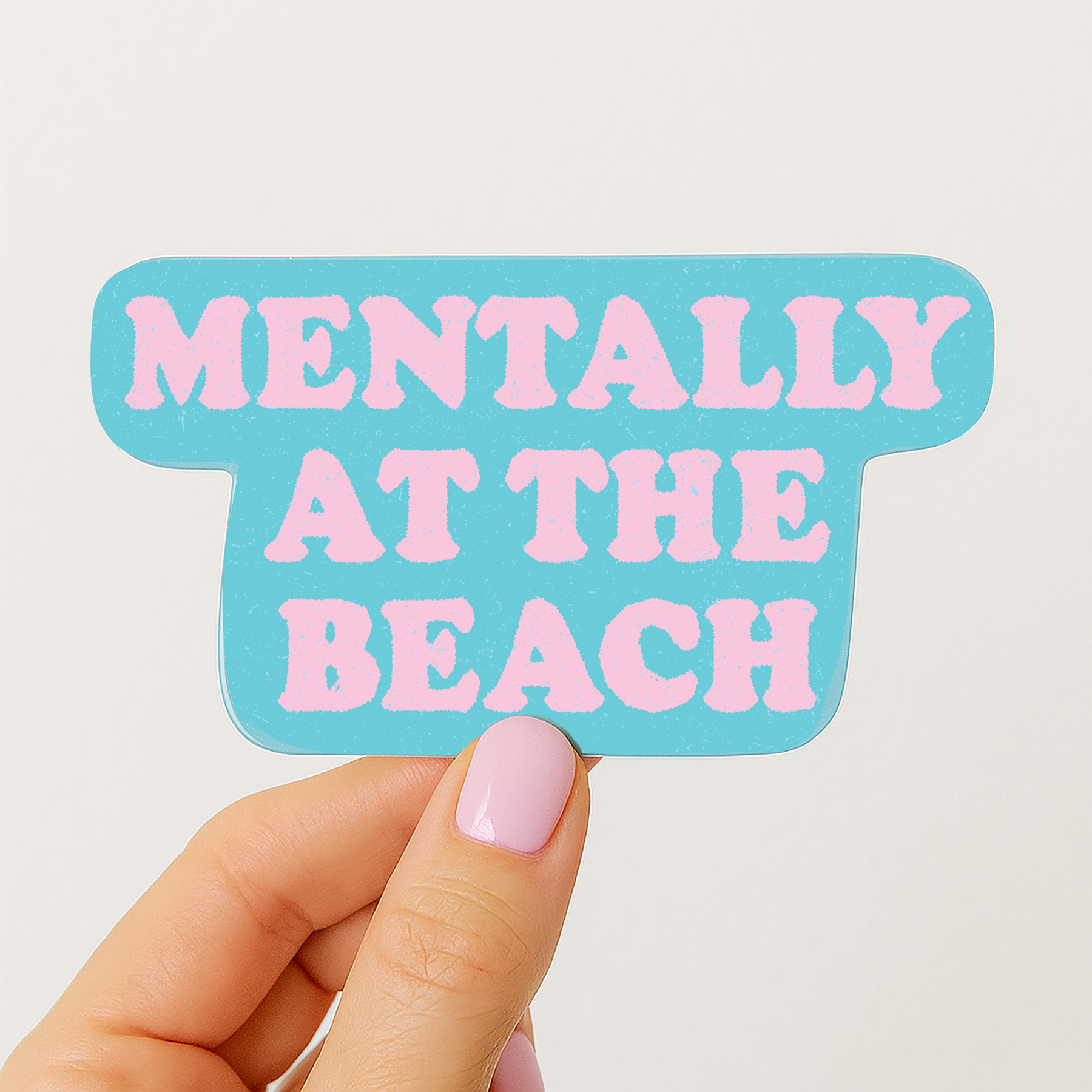 Escape to the coast anytime with our “Mentally at the Beach” vinyl sticker – featuring bold retro lettering in pastel pink on a seafoam blue background. With a fun, sun-washed vibe, this die-cut decal is made for beach lovers, daydreamers, and anyone who’s always mentally seaside. Perfect for water bottles, coolers, laptops, and journals.