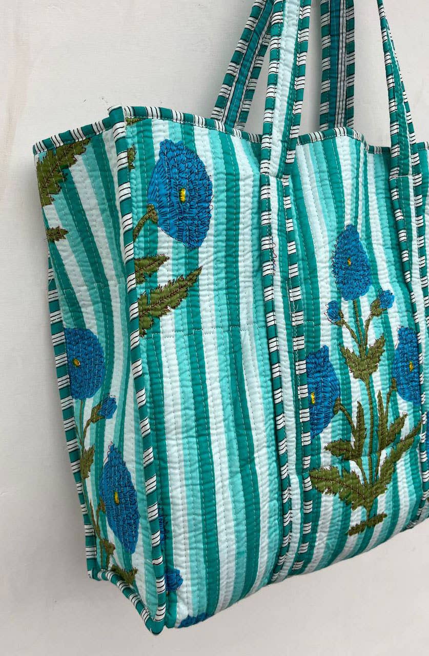 Cotton Quilted Jhola Bag made by Indian Artisans, this cotton quilted shopping bag is totally unique and multi purpose. Use this for your grocery or as a travel bag. Perfect to suit all. Item: 1 PC Cotton Quilted Hand Block Printed Women Carry Bag Dimension :- Length: 18" Inches ( 46 CM) Height: 18" Inches (46 CM) Width: 22" Inches (56 CM) Strap Drop: 11" Inches (28 CM) Handmade Printed Grocery Shopping Bags. Machine Quilted Cotton Shopping Bags. Let’s bring a classic and stylish fashion sense to your day to day lifestyle with Handmade Printed Cotton Carry Bag. It is handmade with durable high-quality soft cotton fabric. A Perfect Carry Bag / Shopping Bag / Beach Bag / Grocery Bag Handbag to give to elegant look with any outfit Color :- Multi Colors Usage : Cosmetic, Make-up, Travel, Toiletries, Medicine, Accessories, Shopping and much more. Perfect for Beach Visits/ Quick Grocery runs/ Carrying Kids items/ Artist Paint book and Paints /Extra Bag Washable on Cold / Delicate