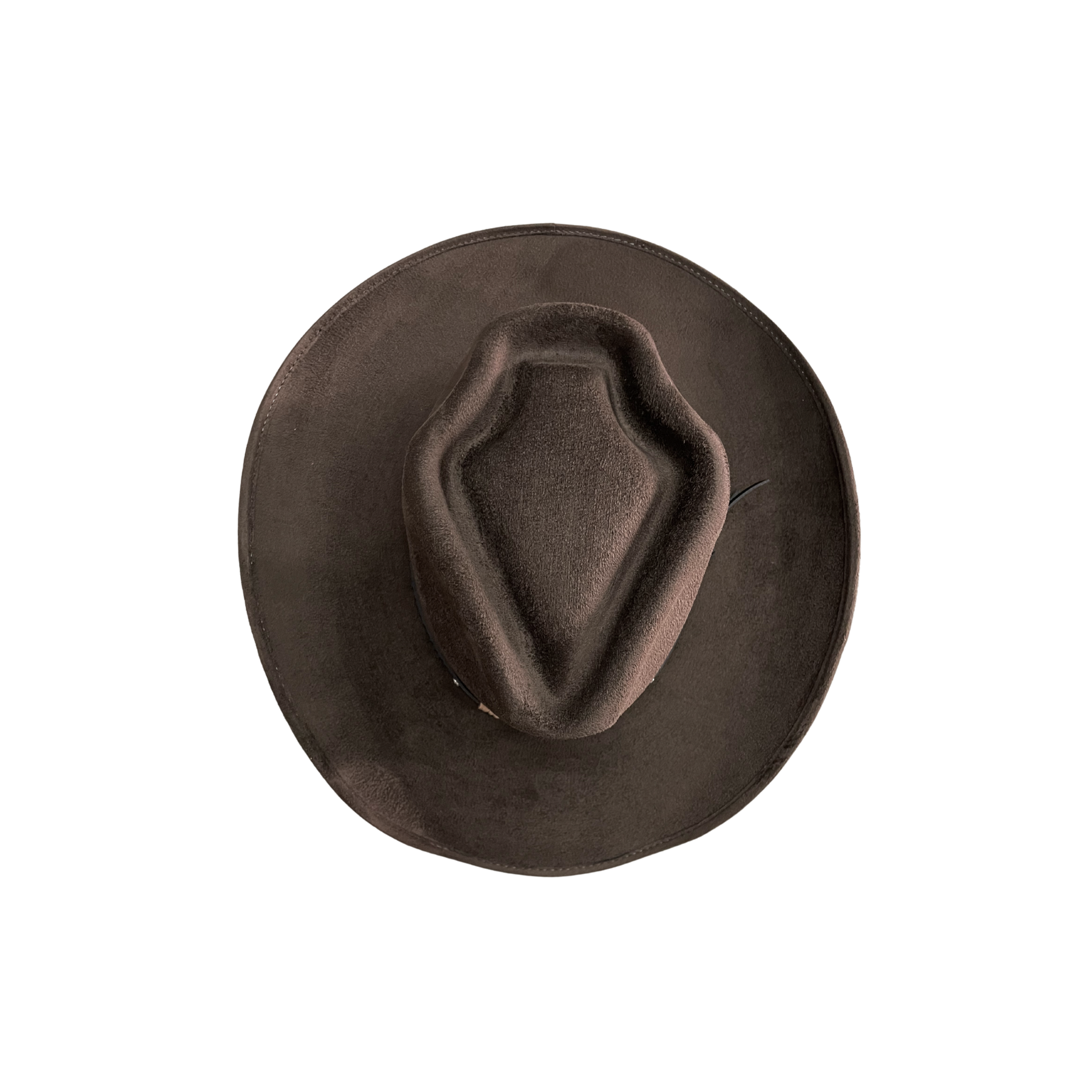 Vegan Suede - Size Medium (Inner elastic band fits 56cm-58cm) - One size fits most - 4.25" Crown Height - 4" Brim - Non-removable hat band -*Please note leather hatband styles may vary* - Stiffened western shaped brim - Handmade item - Made in Mexico