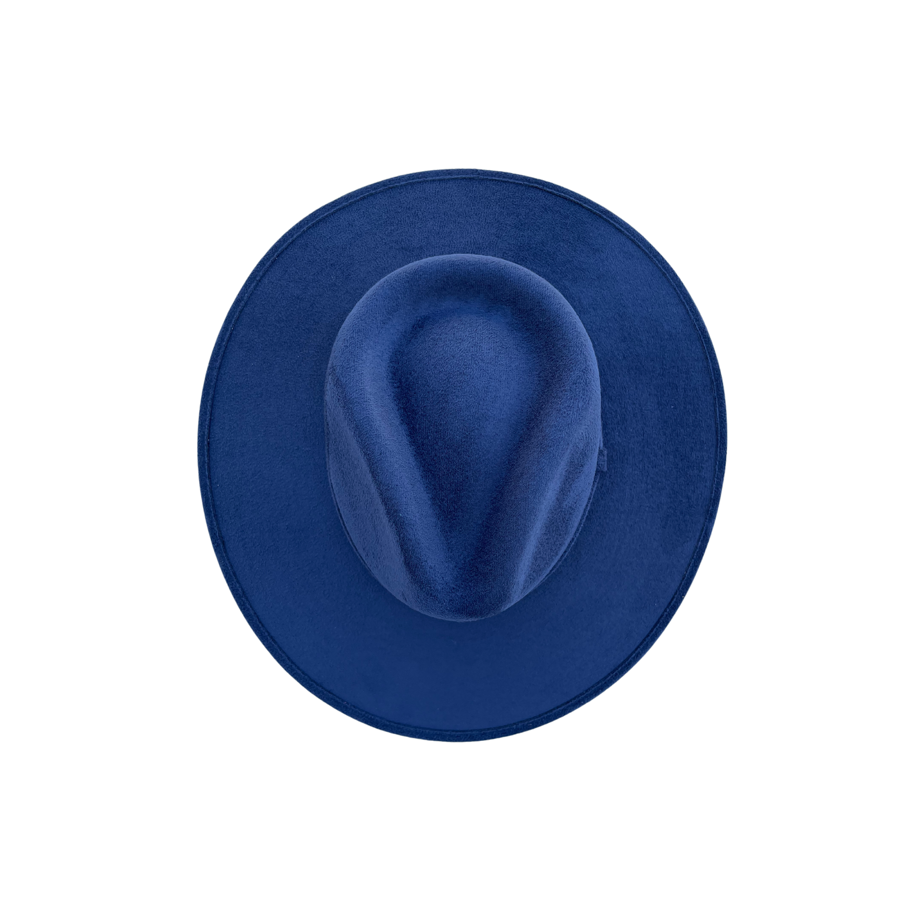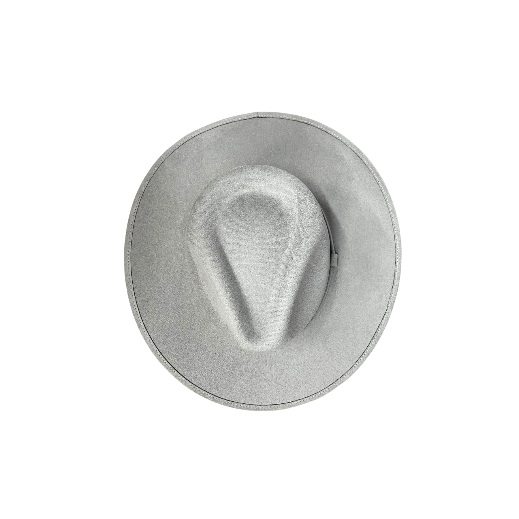 Vegan Suede -Size Medium (Inner elastic band fits 56cm-58cm) -One size fits most - 4" Crown Height - 3.25" Brim  - Stiffened brim