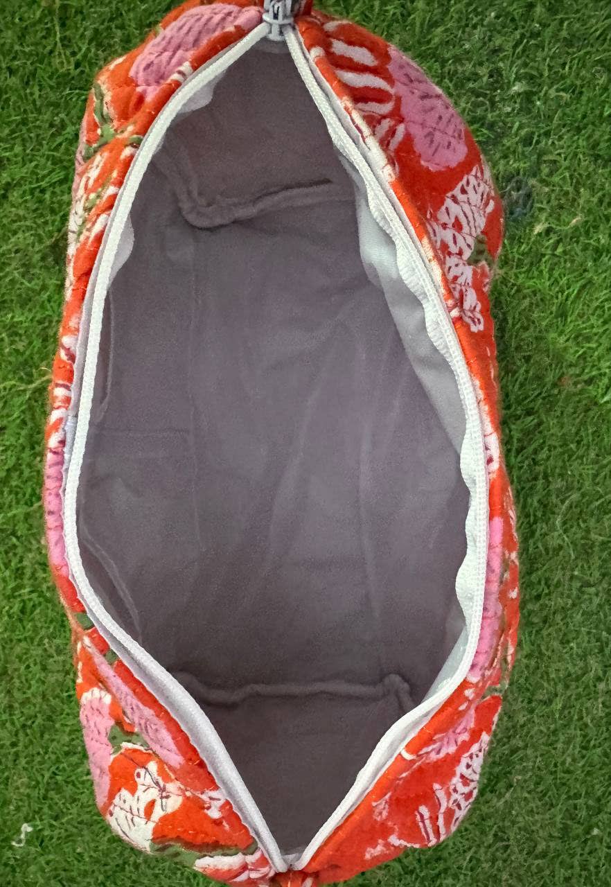 These toiletry bags are a perfect trio for your travel routine and organization. Featuring a hand-printed block print set against quilted stitching, these adorable bags are eye-catching and perfect for any on-the-go lifestyle. Grab one or purchase the whole trio of different sizes and travel in style. These bags are made by a woman-owned store that I order them from. Details: - Features a durable zipper closure to keep your items secure - Fully lined with a waterproof lining to protect against any spills or leaks Measurements: - Large : 10" (Length) x 4.7" (Width) x 5.5" (Height) - Medium: 8.3" (Length) x 3.9" (Width) x 4.3" (Height) - Small : 7.5" (Length) x 3.5" (Width) x 3.9" (Height) If you have any questions, please feel free to ask! I hope you shop with us :) Thank you!